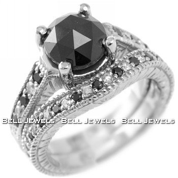 AAA Fancy Black & White Diamond Engagement Ring Wedding Band Set 14k White Gold Review