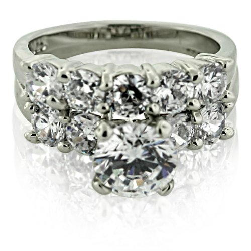 Sterling Silver Diamond CZ Round Cut 5 Stones Wedding Ring Set Review